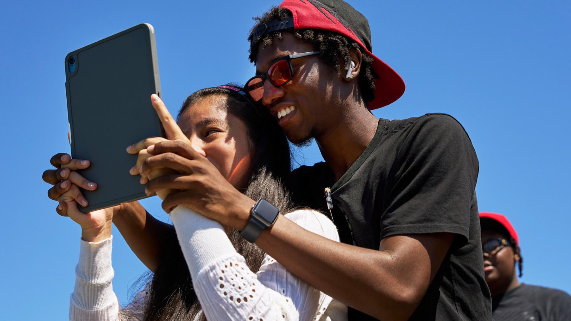 The Chicago Lighthouse provided each of the Photography for All participants with an iPad Air, Apple Pencil, and Magic Keyboard to support their creativity. The iPad setup offered an expansive screen with tools to shoot, edit, and share their work. Many participants, including Opeifa, also used their own iPhone to capture photos on the go, seamlessly switching between devices depending on their needs.